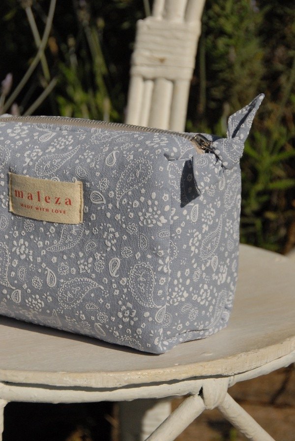 Este portacosméticos/neceser está confeccionado en algodón y está forrado con una tela lavable y resistente, ideal para el uso cotidiano.