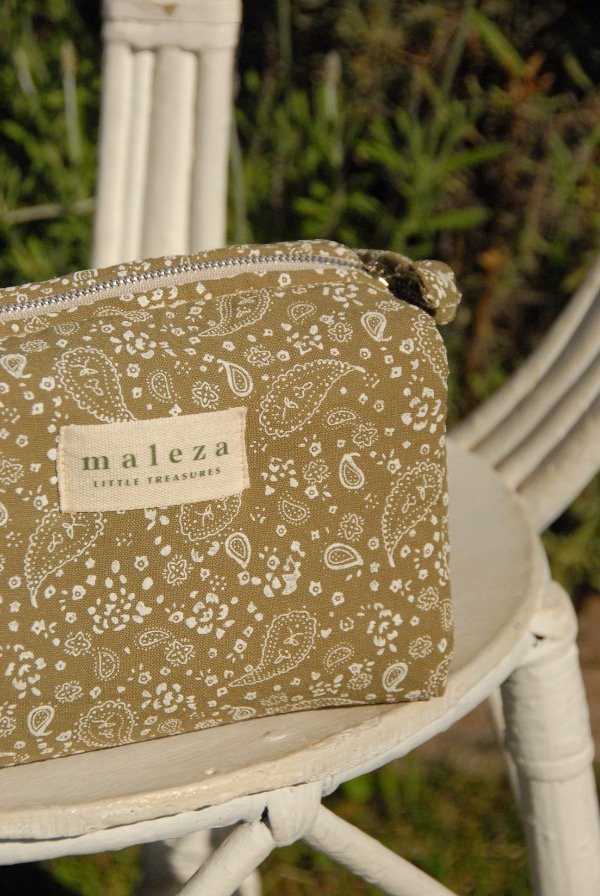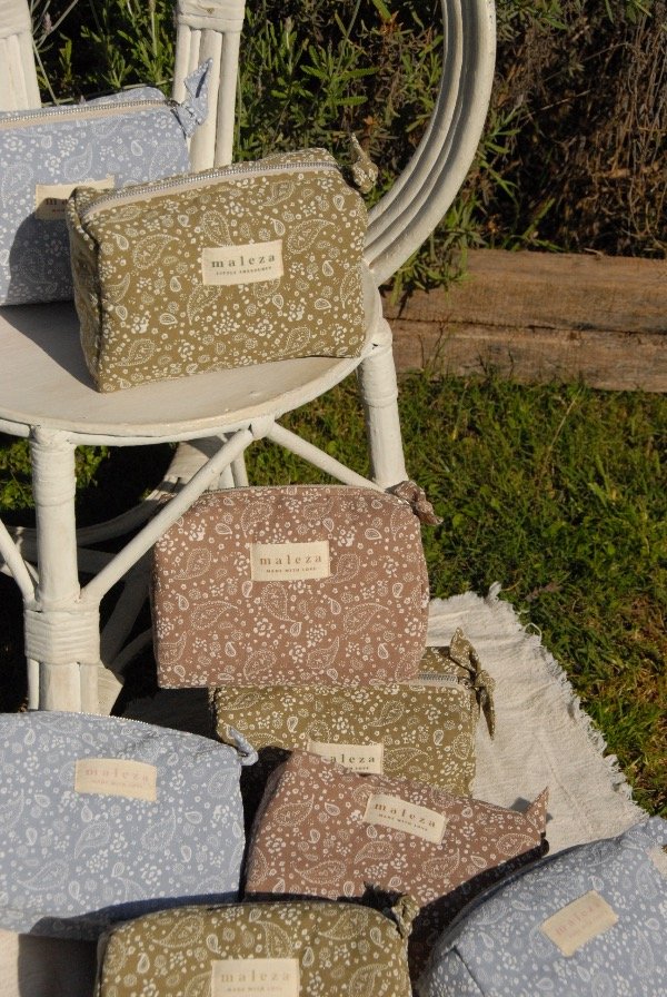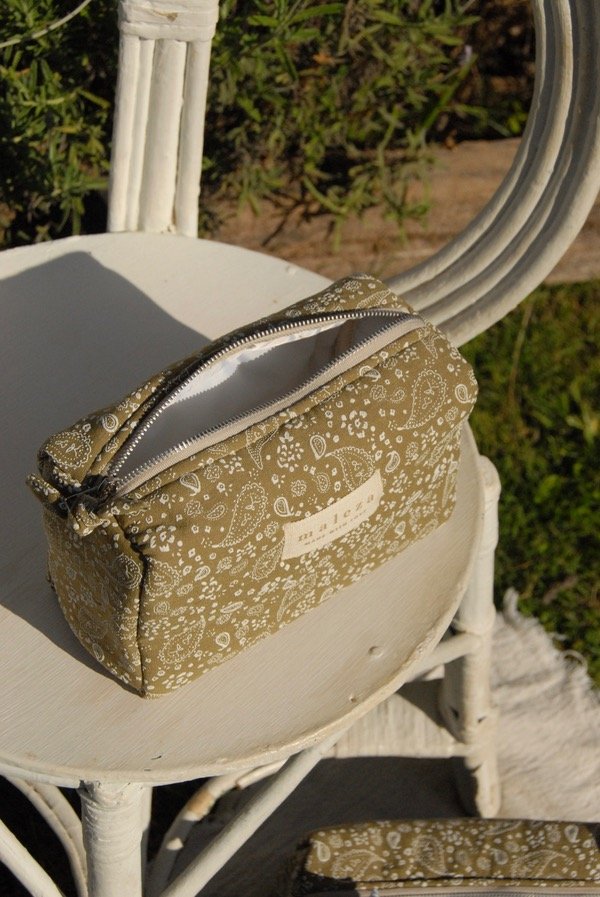 Este portacosméticos/neceser está confeccionado en algodón y está forrado con una tela lavable y resistente, ideal para el uso cotidiano.